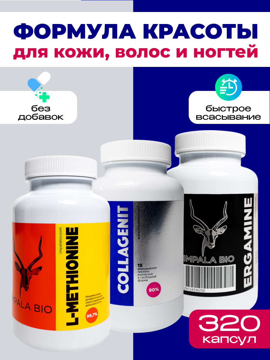 - Днем/вечером во время еды: 3 капсулы Эргамина, 2 капсулы L-Метионина, 2 капсулы Коллагенита;